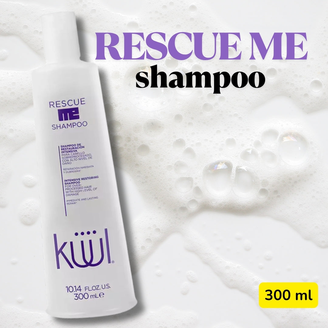 Shampoo Rescue Me: Aplica de raíz a puntas con un suave masaje. Enjuaga.