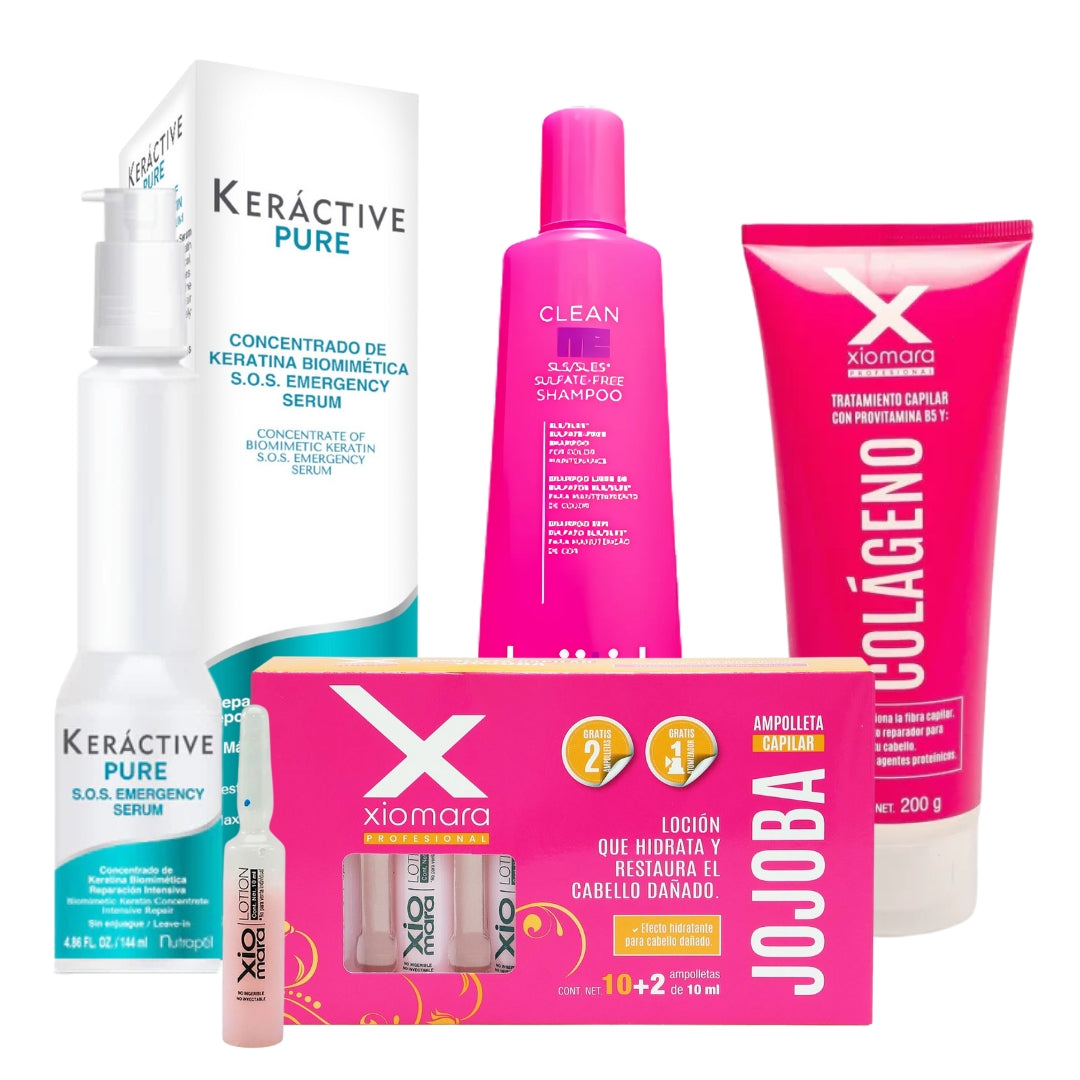 Este kit Keractive Pure Nutrapel incluye mascarilla, shampoo sin sulfatos y ampolletas de jojoba, ofreciendo un cuidado integral que fortalece la fibra capilar, reduce la porosidad y deja el cabello suave, brillante y lleno de vida.