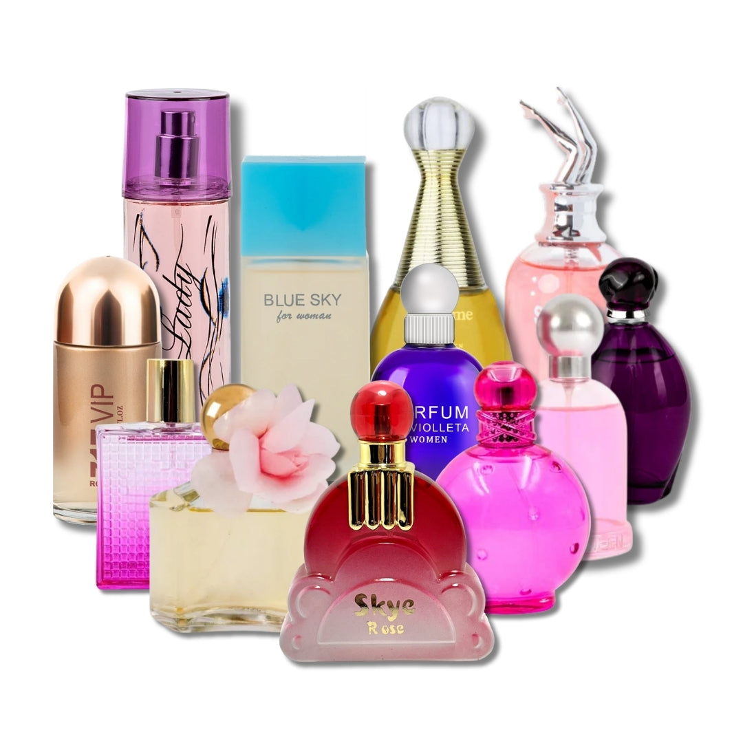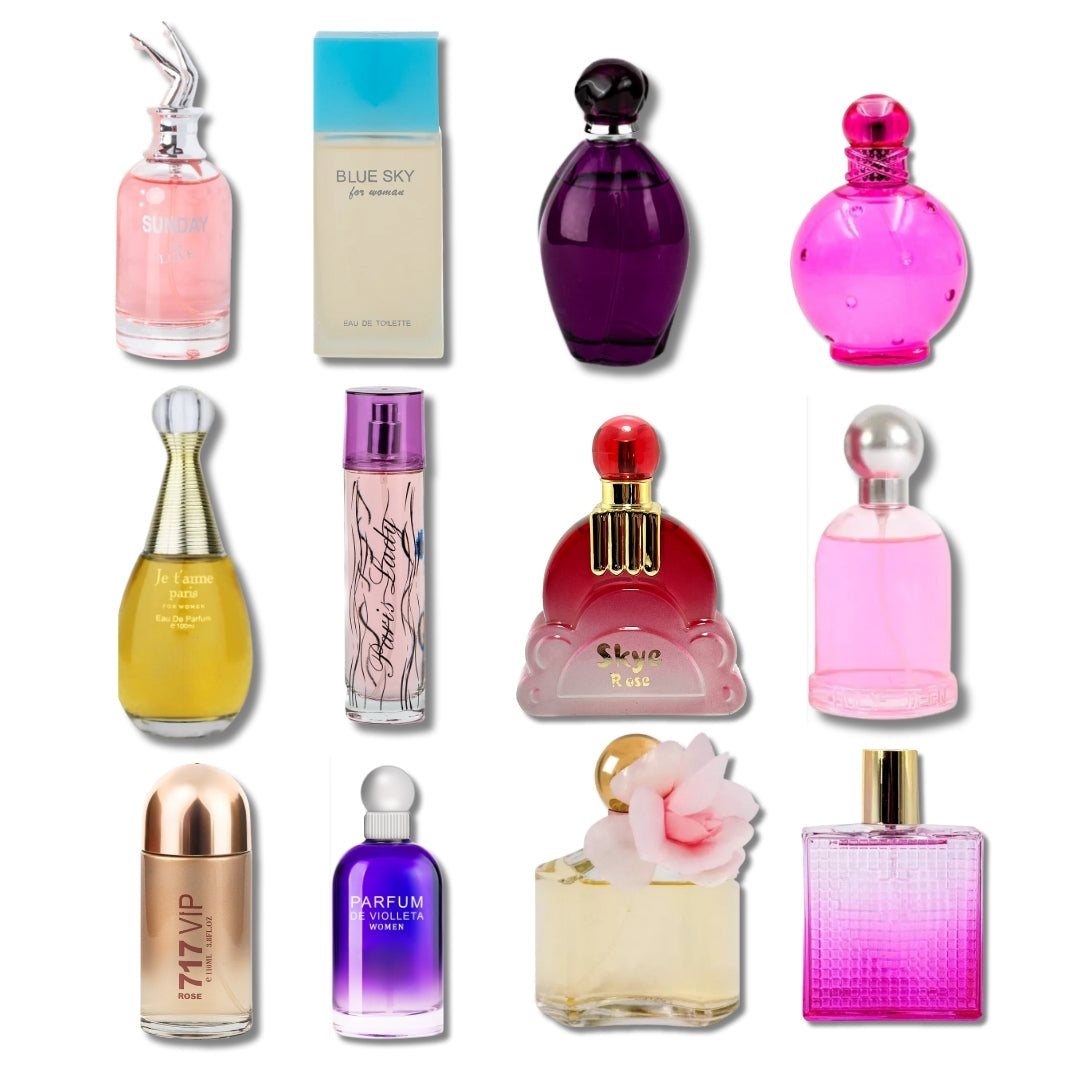 Déjate cautivar por esta hermosa colección de 12 perfumes femeninos, con exquisitas notas florales y dulces que resaltan tu elegancia y estilo en cada momento.